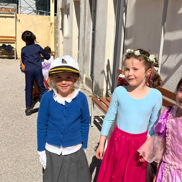 Jeudi 12 mars, pour fêter la mi-carême, les écoliers et leurs maîtresses ont revêtu leurs plus beaux costumes. La classe de CM1-CM2 a choisi le thème des métiers, avec des élèves se déguisant en hôtesse de l'air, en vendeur de beignets, en médecins ou en militaires. Toute l'école s'est réunie à la récréation pour des séances photos mémorables, sur fond de musique entraînante.