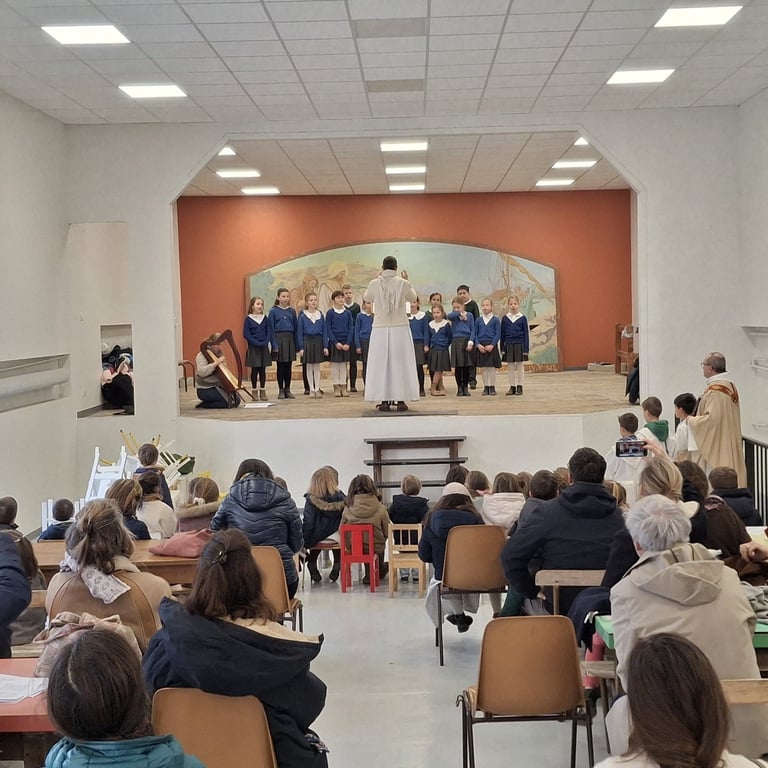 Après quelques mois de travaux de remise aux normes et de peinture, la grande salle de spectacle a été inaugurée officiellement le samedi 10 janvier, en présence du père Gilles de la Congrégation des pères de Timon-David et de nombreuses familles de l'école. Une messe, accompagnée par le chœur des élèves de notre école, a été célébrée afin de rendre grâce pour la présence d'enfants dans ce lieu d'éducation depuis 1902. « Que sera donc cet enfant ? » (Luc, 1, 66) a rappelé le père pendant son homélie, citant Zacharie à propos de son fils Jean-Baptiste. Voilà la question essentielle à se poser, nous, parents et enseignants, au sujet de chacun des enfants qui nous sont confiés. Laissons Dieu œuvrer dans leur cœur, gardant toujours l'Espérance qu'Il a un projet pour chacun d'eux.